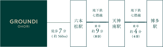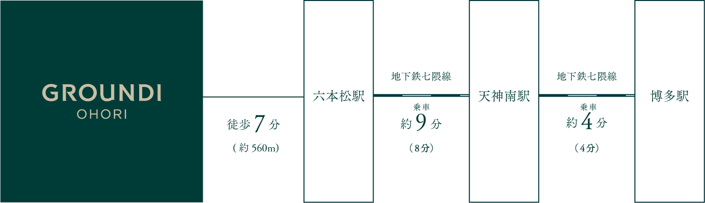※六本松駅から継続乗車時の所要時間です。